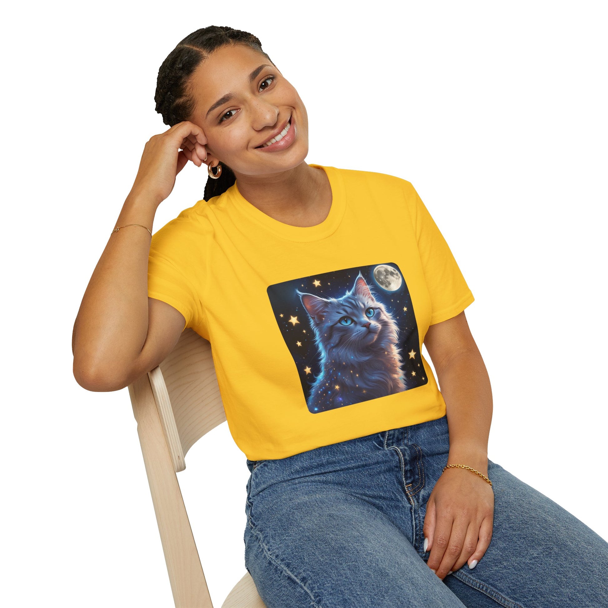Introducing our unisex softstyle t-shirt, designed for comfort and style all year round. This shirt features a mesmerizing galaxy cat design, perfect for animal lovers and those who embrace the whimsical charm of the cosmos. The lightweight, breathable fabric ensures that you stay comfortable whether you're lounging at home, enjoying a casual outing, or attending a themed event. Ideal for gifting during holidays, birthdays, or special celebrations, this shirt is particularly relevant for occasions like National Cat Day or World Space Week. With its versatile appeal, it caters to anyone who appreciates artful clothing and wishes to express their unique personality through their wardrobe.