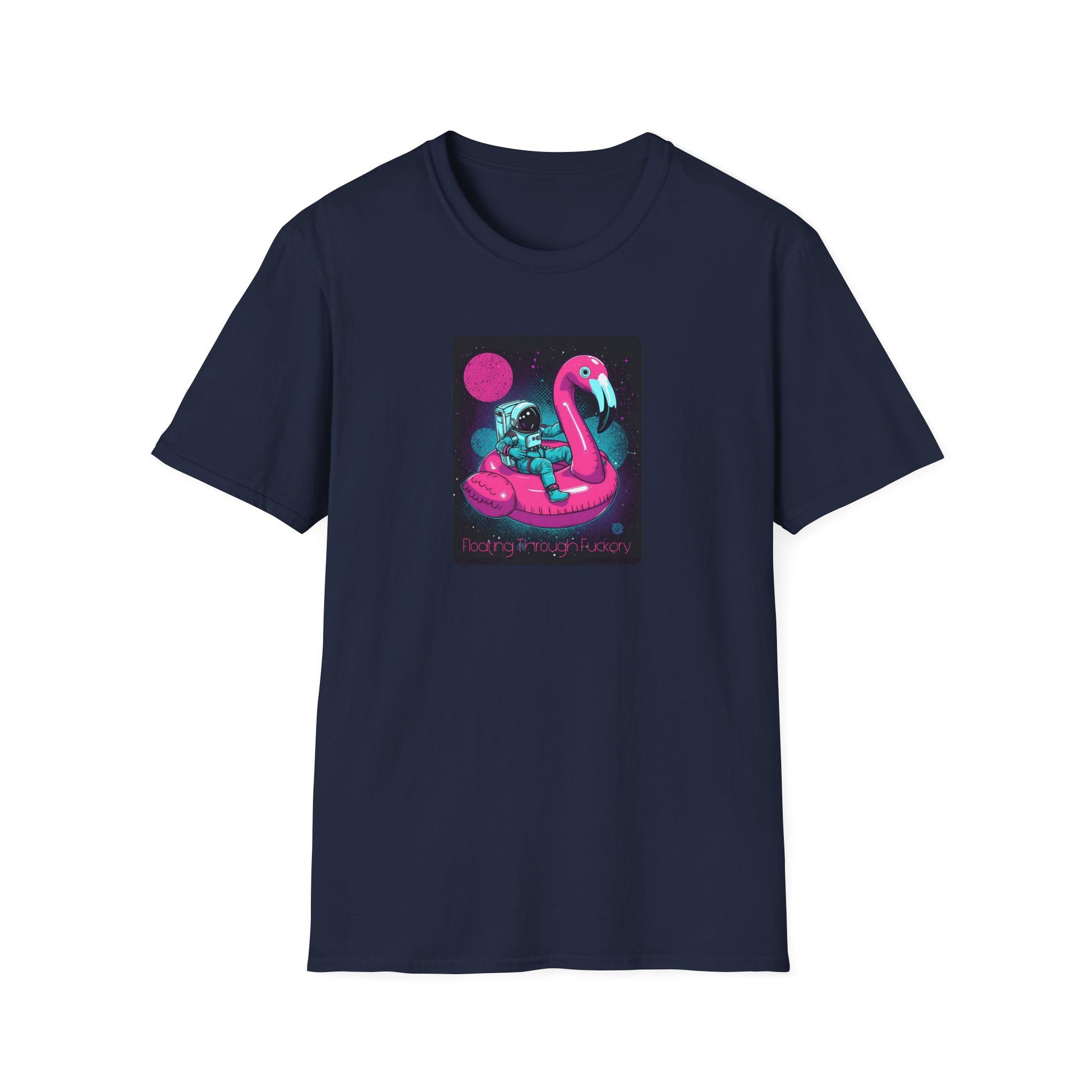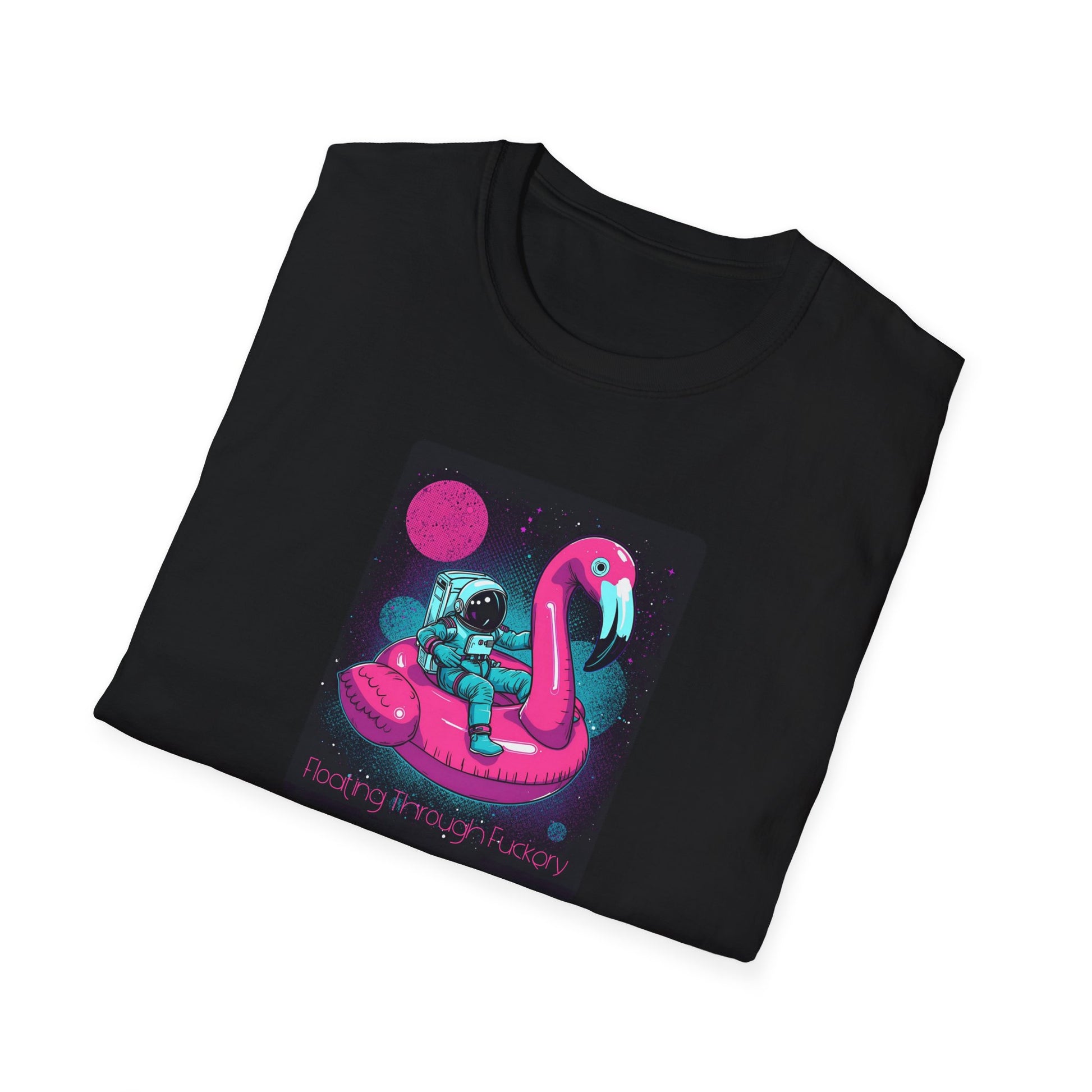 Floating Through Fckery T-Shirt – Surreal Astronaut Flamingo Space Tee